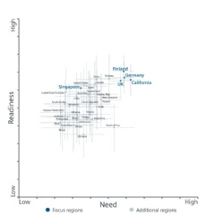 The white paper focuses on Finland, Germany, Singapore, the UK, and California (US). These regions were selected because they have been at the forefront in developing and adopting modern energy technologies in the past. The research found that Finland is the country with the highest readiness, in part due to its plans for a flexibility market and high carbon price, while California has the highest need, in part due to its solar panel penetration. Germany and the UK follow closely behind, while Singapore, although exhibiting high grid edge readiness, presents a lower need, partly due to moderate ambitions for introducing renewables into its future energy mix.