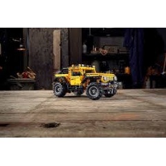 Once the build is complete, builders create endless off-road adventures with the feature packed, 665-piece model. A button operated front steering system and powerful axle-articulation suspension means they will love testing out their model on obstacles everywhere. The eye-catching, yellow-and-black colour scheme is captivating in action or on display.