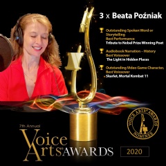 Every year the Society of Voice Arts and Sciences honors excellence in a wide range of contributions by actors, producers, marketing executives, casting directors, and many more. This year it has nominated Pozniak for three prestigious Voice Arts Awards: