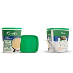 The appearance, functionality and safety of the new Knorr® bouillon powder packaging is exactly the same as before and the quality is likewise as high as ever. Consumers can still simply remove the cardboard sleeve from the plastic container once it is empty before disposing and recycling of the two components as usual.