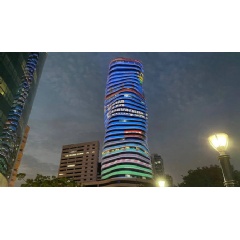 The Point, the city’s tallest building standing 137 meters high (nearly 450 feet) and featuring iconic spiral architecture, was one of the sites along the route. Covering an area 100 meters high by 30 meters wide (328 ft x 98 ft), the mapping highlighted the development of the city through animated graphics and other elements, representing different stages in the city’s growth, like the railway, its port, and the architecture.