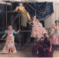 The BFC Scholars Aurélie Fontan, Edward Mendoza and Shanti Bell, were mentored by Designer Richard Quinn to create fabulous period costumes worthy of modern-day gossip columns. The final designs were modelled by the stars of the hotly anticipated series Phoebe Dynevor, Nicola Coughlan, Claudia Jessie, Adjoa Andoh and Golda Rosheuvel and photographed by Amber Pinkerton.