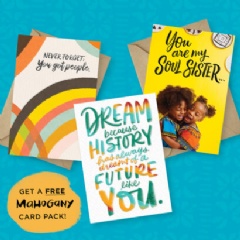 Included within the pack is a greeting card from the newest collection in the Mahogany line, Uplifted & Empowered. Appropriate for everyday sending, Uplifted & Empowered captures the beauty, significance and power of Black lives. Themes within the collection include pride in self/community, support, empowerment, inspiration, faith and solidarity.