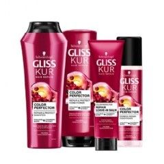 The Gliss Kur Colour Perfector Repair & Colour Shine Shampoo cleans hair and offers deep repair and colour protection for up to 40 washes. The Gliss Kur Colour Perfector Repair & Colour Shine Conditioner provides intense conditioning and colour protection*. The Gliss Kur Colour Perfector Express-Repair-Treatment provides immediate, perfect compatibility and protection for colour-treated hair. The Gliss Kur Colour Perfector 2-in-1 Treatment provides deep hair repair & color protection. Use as pre-wash for lighter results or as post-wash for intense results. Finally, the Gliss Kur Colour Perfector Repair Leave-in-Balm provides particularly intense care, colour protection* and shine – for silky soft, radiantly shiny, colour-treated hair.
