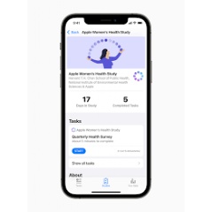 The Apple Women’s Health Study is a first-of-its-kind research study that aims to advance the understanding of menstrual cycles and how they relate to various health conditions such as polycystic ovary syndrome, infertility, and menopausal transition. iPhone and Apple Watch users across the US download the Research app to enroll in the study, conducted in partnership with Harvard T.H. Chan School of Public Health and the NIH’s National Institute of Environmental Health Sciences (NIEHS). Participants must be at least 18 years old (at least 19 years old in Alabama and Nebraska and at least 21 years old in Puerto Rico) and have menstruated at least once in their life.