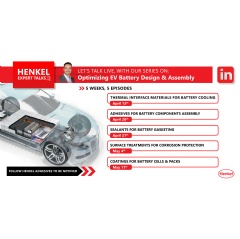 1. Thermal interface materials with Holger Schuh, April 13, 3 PM CESTThermal management is the key to safe and efficient battery performance. In this session, Holger Schuh, Global Manager for Automotive Components Thermal Technologies, describes how this challenge can be taken on with best-in-class thermal interface materials. Thermal runaway remains a concern to stay with the limited operating temperature range of battery chemistry and to prevent fires. If just one cell catches fire, it starts a chain reaction and destroys the entire pack. Hence, thermal management is critical. Henkel produces a range of best-in-class thermal interface materials specifically to address thermal management issues in battery packs. In addition to thermal conductivity, these materials offer such benefits as high flow rates to support large volume production, lower assembly force, reliability, and rework ability. To learn more please visit:
