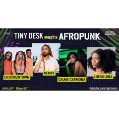 Since NPR Music launched the Tiny Desk concert series in 2008 more than 1000 performances have been recorded and they attract more than 57 million viewers each month unifying a passionate community around the love of music discovery. This year NPR Music has been producing Tiny Desk (home) concerts; the latest iteration of Tiny Desk concerts in response to ongoing social-distancing measures. The series curates performances from around the world, with the same Tiny Desk spirit — stripped-down sets in an intimate setting — just in a different space. The Tiny Desk Meets AFROPUNK program will include performances by ChocQuibTown, Calma Carmona, Luedji Luna, and Nenny, and will be hosted by AFROPUNK vet Jorge "Gitoo" Wright"