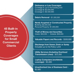 In keeping with its innovative approach, the Sompo GRS Small Business team recently broadened its property offering to include 45 built-in coverages designed specifically to meet the needs of smaller U.S. commercial clients, including ordinance and law coverages, newly acquired or constructed property, and theft of money and securities.