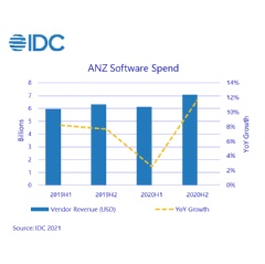 According to the latest IDC Worldwide Semiannual Software Tracker (2020H2), total 2020 ANZ software spending for Australia and New Zealand (A/NZ) reached US$13 billion, up 7% from 2019. In the second half of 2020, the A/NZ software market had a strong rebound, growing by 12% YoY, compared to 3% growth in the first half of the year.