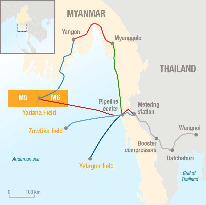 MGTC gas transportation system carries the gas produced from the Yadana field operated by Total Exploration & Production Myanmar to the Myanmar/Thailand border over a distance of 400 kilometers.