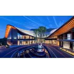 Nestled on the banks of a lake and surrounded by floral gardens, hot springs and mountains, Radisson Collection Resort, Nanjing is inspired by the scenery of its destination. The design concept appears to ripple and flow like water, and dramatic glass walls let light flood through the interiors, blurring the boundaries with nature and blending seamlessly with the surrounding environment.