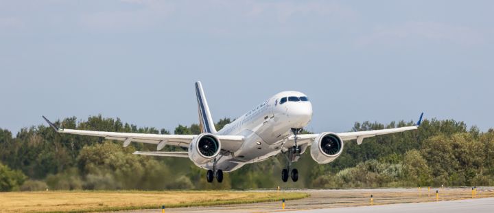 The Air France Airbus A220 takes off for the first time!( Press Release Image: https://photos.webwire.com/prmedia/7/278368/278368-1.jpg )