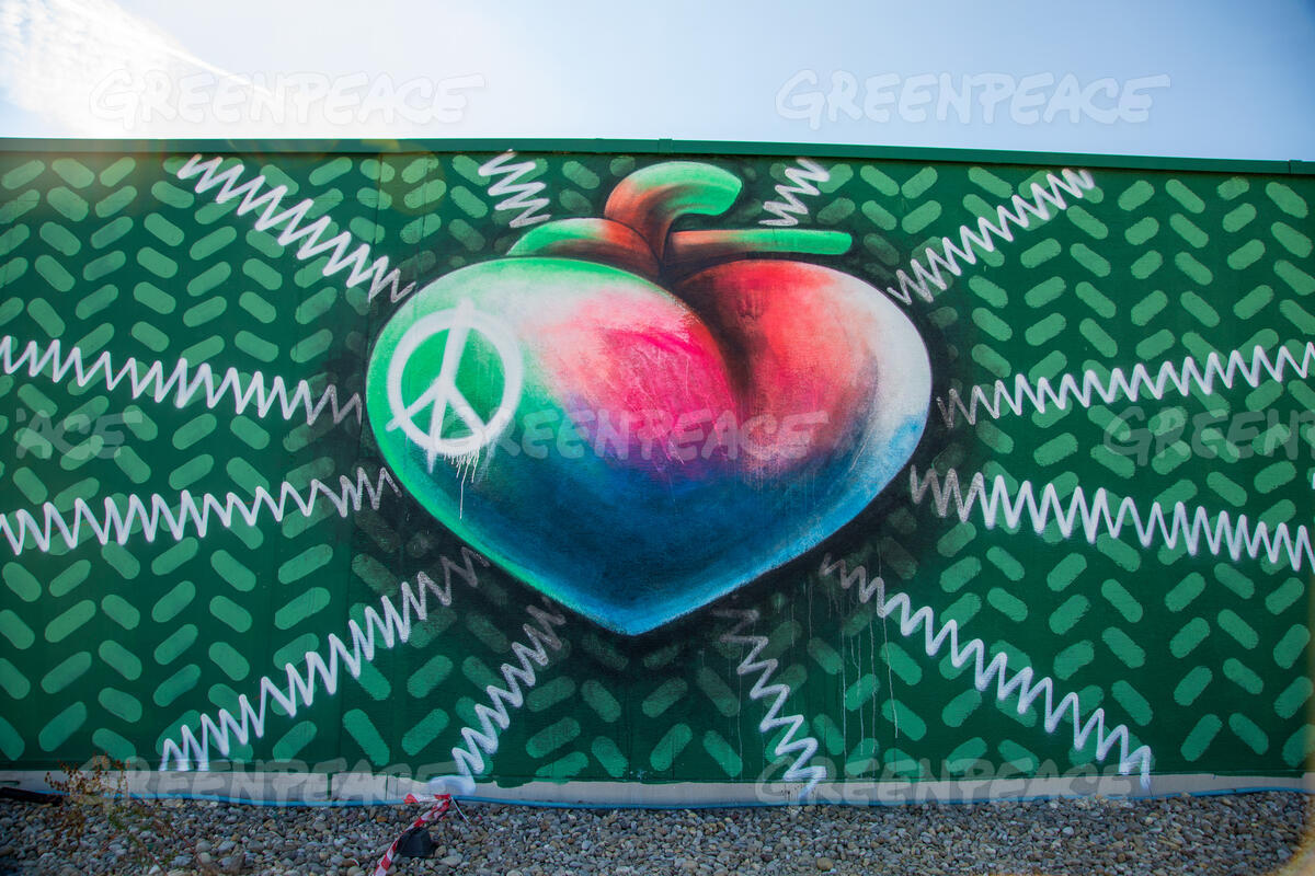 “‘Artivism’ was a presence in the first ever Greenpeace voyage in 1971, when the crew painted a banner combining both the ecology and peace symbols onto the sail of the Phyllis Cormack,” said Greenpeace murals curator Paul Earnshaw. “Since that day we have grown into a global organisation but the creativity and artivism present in that first campaign has been constant through five decades of activism worldwide.