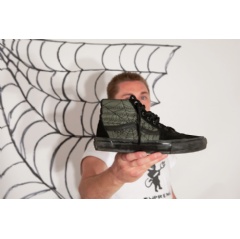He’s been a Vans Skate team member since 2018, is part of Hockey Skateboards and had a star turn in Supreme’s Blessed film. All this unique style and experience is incorporated on Kadow’s new Vans sneaker: a spiderweb-equipped take on the Sk8-Hi that follows up his Supreme-exclusive Sk8-Hi release from earlier in October.