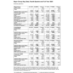 The following tables contain the key data for the Bayer Group and its divisions for the full year and the fourth quarter of 2021.