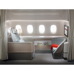 On board the Boeing 777-300, each La Première suite has a wide seat that transforms into a horizontal bed more than two metres long, providing optimum relaxation. With Michelin-starred menus signed by Anne-Sophie Pic, a carefully selected wine and champagne list, a wide choice of entertainment on high-definition screens and attentive service, all guests travel in optimum conditions of comfort.