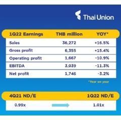 Thai Union reports record 1Q22 revenue on the back of robust global demand and strong core business performance