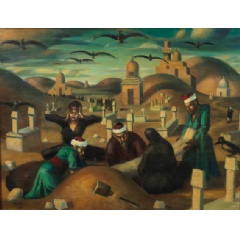 Noor Soussi, Head of Sale, remarks "The painting is particularly fascinating, as it demonstrates how Said started to take risks, finding his identity as an artist. He grew tired of the staid conventions of academic portraiture and landscapes and sought to capture more intimate scenes from Egyptian everyday life" His first work with a religious subject matter, it signals Said’s gaze shifting to his immediate surroundings, his home nation. It contributes to a robust history of Egyptian funerary art, yet the specific choice of an entombment references the death of Christ, central to a Western canon populated by Flemish Primitive painters and Tintoretto. In appropriating this narrative, he elevates the plight of the ordinary civilians to that of the holy and the heroic.