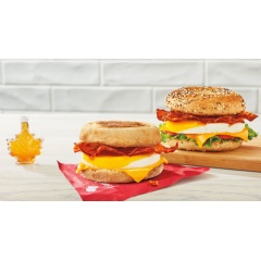 Canadians can now enjoy a delicious new twist on their favourite breakfast at Tims with the introduction of the Tim Hortons Maple Bacon Breakfast Sandwiches. Merging two classic Canadian flavours together, our crispy and naturally smoked bacon is topped with a sweet and savoury glaze that has just the right hint of spice.