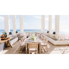 The Penthouse’s newly remodelled suite design aesthetic embodies intimate luxury with contemporary touches, warmth and the comforts and privacy of a beautiful residential space. Upon entry to the two-bedroom suite, guests are welcomed into a newly redesigned hallway that sets the tone featuring a curated collection of fine art photography by renowned aerial photographer Gray Malin. The bright and airy living room features a stunning new open-floor design – seamlessly connecting both the living and dining rooms, and anchored by floor-to-ceiling windows to embrace the alluring ocean views. Lending itself to indoor-outdoor living at its best, the expansive wrap-around 800 square-foot (74 square metre) lanai (balcony) – the location for the wedding ceremony and cocktail reception - features a soft, evocative palette of sea and sky, creating an inviting escape to lounge during the day or relax under the stars in the evening. New flooring, modern coastal furniture, and natural textiles with vibrant touches of colour create a casual, yet luxurious lounge area.