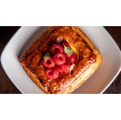 Executive Pastry Chef Daniella Lea Rada presents her house-made artisanal breads and flaky, golden-brown Parisian pastries such as butter and almond marzipan croissants, pain au chocolate, danishes topped with seasonal fruits such as strawberries, blueberries, raspberries and peaches, cinnamon rolls, and freshly baked muffins and doughnuts topped with maple bacon, toasted coconut, bourbon pecan and lemon poppy-seed.
