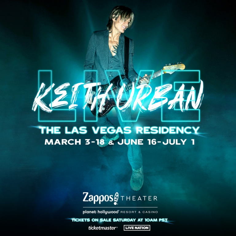Global music superstar Keith Urban has announced a new headlining Las Vegas residency at Zappos Theater at Planet Hollywood Resort & Casino opening Friday, March 3, 2023 for a run of 16 dates.