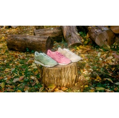 The original Molded Fiberglass Chairs possessed a distinctive straw-like texture created by the raw fiberglass strands from which they were pressed. This tactile quality gave every chair its own unique patina. The Reebok x Eames Classic Leather Fiberglass Pack captures this fibrous texture on its all-leather uppers, which are bathed in three heritage Eames colorways: Parchment, Sea Foam Green and Pink.
