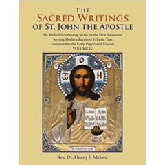 Rev. Dr. Henry Malone is elated to announce the promotion of his book, The Sacred Writings of St. John the Apostle: The Biblical Scholarship Series on the New Testament Writing Modern Received Ecleptic Text Compared to the Early Papyri and Uncials, Volume 4.