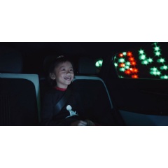 The commercial opens with St. Jude patient Adalyn sitting safely in the backseat of the EV6, which ‘travels’ through a tunnel of red and green star-shaped arches created by the curved screens. The LED screens slowly transition to depict a star-filled night sky as a personalized welcome message appears featuring the patient’s name. As the EV6 is gently lifted and lowered to simulate the experience of driving, the virtual landscape reveals a forest filled with majestic snow-covered pine trees, a galloping reindeer, a soaring eagle and a narwhal moving across the sky. The excitement and joy of being transported to this mystical winter wonderland shine on Adalyn’s face as the EV6 ascends above the rooftops of the North Pole.