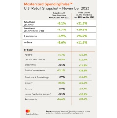 Mastercard SpendingPulse: U.S. retail sales grew 8.1%* year-over-year in November