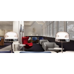 Elegant and warm, the entire space features the Air France colours - shades of blue, grey and touches of red - as well as the accent, the company’s brand symbol, and the winged seahorse, the historical emblem reminding us of its rich history. Champagne-lacquered metal screens structure the various different areas. The furniture has been carefully chosen and includes the iconic Egg armchair and creations by French designers such as Pierre Paulin, Patrick Jouin and brothers Ronan and Erwan Bouroullec. Air France also favours noble and natural materials such as oak and leather.