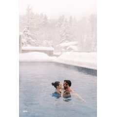 The Spas at Four Seasons Hotel Megève and Chalets du Mont d’Arbois, Megève, A Four Seasons Hotel are veritable havens of peace, welcoming lovebirds looking to relax and unwind in complete privacy. Designed to soothe aches and pains, the 90-minute Hot Candle Massage is a cocooning treatment that uses powerful active ingredients of natural soy wax to deeply hydrate the skin. At the end of the ritual, couples can unwind with a glass of fine Barons de Rothschild champagne, before enjoying a relaxed swim in the heated indoor-outdoor swimming pool as they watch snowflakes gently fall to the ground.
