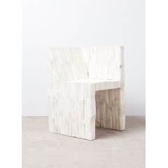 A nod to the home furnishings of iconic American artist Donald Judd, the ivory bone chair acts as a memento mori, drawing inspiration from various cultures, from the divinatory practices of the Shang Dynasty China to contemporary syncretism.