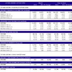 The following table summarizes the operational statistics for the month and the year to date for the main business units in LATAM