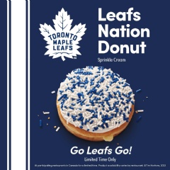 Tim Hortons restaurants in and around Toronto are cheering on the Maple Leafs in the second round with a limited-time Leafs Nation Donut!