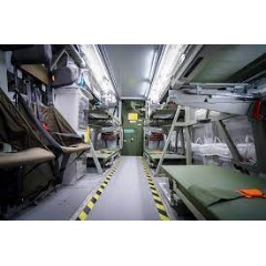 In the GVTC, two paramedics can treat up to eight patients and, for example, monitor their vital signs and oxygen saturation, perform a defibrillator operation or have patients ventilated via the integrated oxygen-generation system. The container also protects its occupants and the equipment on board from chemical warfare agents, shelling and heavy explosions. A power generation unit enables self-sufficient operation for hours, while the high-performance air-conditioning system allows the GVTC to be used in extreme climatic conditions.