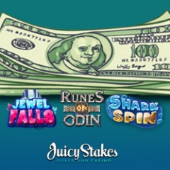 Juicy Stakes Casino is giving cash bonuses to play on three games from Nucleus Gaming: Runes of Odin, Jewel Falls and Shark Spins. These bonuses are available for two weeks, May 15 – 28, 2023. Players can win up to $250 during their free spins.
