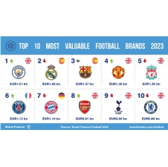Paris Saint-Germain overtakes FC Bayern Munich, while only three French clubs feature in top 50Paris Saint-Germain (brand value up 10% to €1.1 billion) has moved up one rank into 6th, overtaking 2022 rival FC Bayern Munich (brand value down 1% to €1.1 billion) who drops to 7th. PSG, the current top-ranked team in the French Ligue 1, gained global recognition and popularity following the 2022 World Cup, which saw young talent Kylian Mbappé, and footballing legend Lionel Messi go head-to-head in a historic final. The club’s formidable and widely recognised powerhouse trio of Messi, Mbappé, and Neymar, has solidified PSG’s iconic status, in the footballing world and beyond.