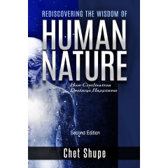 “Rediscovering the Wisdom of Human Nature: How Civilization Destroys Happiness” is available on both Amazon and Barnes & Noble. For more information on Chet Shupe’s research and future publications, visit his website.