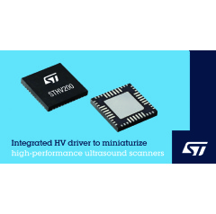 Geneva, June 29, 2023 -- The STMicroelectronics STHV200 ultrasound IC integrates linear and pulse drivers with clamping, switching, and diagnostic circuitry to simplify, miniaturize, and cut the bill of materials in medical and industrial scanners.