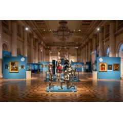 The exhibition includes more than 380 items from the collections of the State Hermitage: tournament and parade armour, examples of Western European arms, pieces of mediaeval applied art, paintings and graphic works, sculpture, books and manuscripts, stained glass, as well as items of furniture, glassware and pottery, porcelain and tapestries.