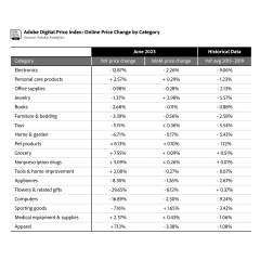 Adobe (Nasdaq: ADBE) announced the latest online inflation data from the Adobe Digital Price Index (DPI), powered by Adobe Analytics. Online prices in June 2023 fell 2.6% year-over-year (YoY), the most significant decrease since May 2020 when prices fell 1.5% YoY. June marks the 10th consecutive month of YoY price decreases, with over half of Adobe’s tracked categories (11 of 18) seeing prices fall on a YoY basis. On a month-over-month (MoM) basis, online prices fell 1.3% in June. Price drops have been driven by sharp declines in categories including electronics (down 12.9% YoY and 2.3% MoM), computers (down 16.9% YoY and 2.5% MoM) and appliances (down 8.3% YoY and 1.3% MoM).