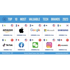 Amazon overtakes Apple to become the world’s most valuable tech brand, valued at USD299.3 billionAmazon has overtaken Apple to become the world’s most valuable tech brand, with a brand value of USD299.3 billion. Amazon’s brand value has increased 36% since the beginning of the COVID-19 pandemic and is the world’s most valuable brand across all sectors, according to Brand Finance’s Global 500 2023 report.