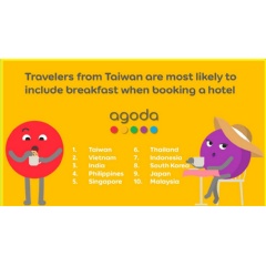Looking at specific destinations, Agoda data reveals that breakfast is selected more often for travel to Vietnam, followed by Taiwan (#2) and Philippines (#3). There appears to be less appetite for the breakfast buffets in Japan (#7), Malaysia (#8), and Singapore (#9), but it is least popular in South Korea (#10), where only 1 in 10 travelers include the morning meal in their hotel reservations.