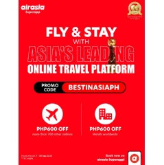 From 7 - 30 September 2023, airasia Superapp users can enjoy PHP600 OFF* with promo code “BESTINASIAPH” when they book ANY airlines (not inclusive of AirAsia flights) and ANY hotels to their desired destinations, with a minimum spend of PHP4,000.