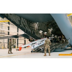 During the exercise, the team demonstrated several of the Chaparral’s autonomous cargo delivery system capabilities, including loading and deploying the vehicle from a C-17 aircraft, stowing and deploying the wing and tail, locating and picking up a cargo pod, autonomous taxiing, and delivering a cargo pod to the next location.