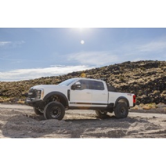 The Shelby team carefully developed their version of the four-wheel drive vehicle. FOX Factory - Performance Vehicle Development team designed a new suspension system that increases the ride height, delivers more travel and improves off-road handling. The Shelby F-250 Super Baja wears 20-inch alloy wheels bearing BFG KM3 37-inch tires, with a pair of spares mounted on a steel chase rack in the bed.
