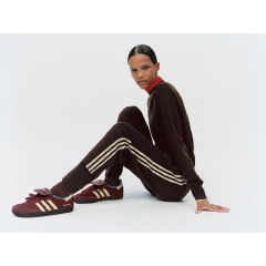 Staying true to the designer’s ongoing exploration of athletic codes, the apparel offering reimagines adidas’ sporting legacy through a selection of refined and elegant archival looks. Off-pitch styles include an elevated knit set in mahogany brown alongside football shorts in a sand colored nylon with the iconic Three Stripes contrast. Swapping creative sources of inspiration from the 70s to the 90s, key pieces are rendered in a lightweight nylon fabrication, including a pale sky tracksuit with reflective piping and a black nylon top with a contrasting vivid green knit collar. All pieces are available in unisex sizing.