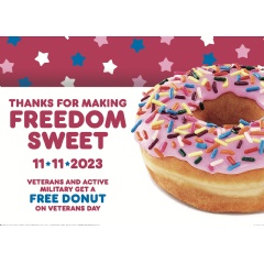 Current and former members of the military can stop by participating Dunkin’ restaurants nationwide on Saturday, November 11 to pick up a free donut on us.