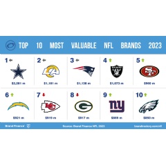 With a brand value of USD2.3 billion, the Dallas Cowboys maintain their position as the most valuable NFL brand, significantly outpacing the second ranked Los Angeles Rams, whose brand value stands at USD1.2 billion. Notably, the Cowboys are also the most valuable sports brand in the world, ahead of English Premier League soccer team Manchester City FC (brand value USD1.6 billion).